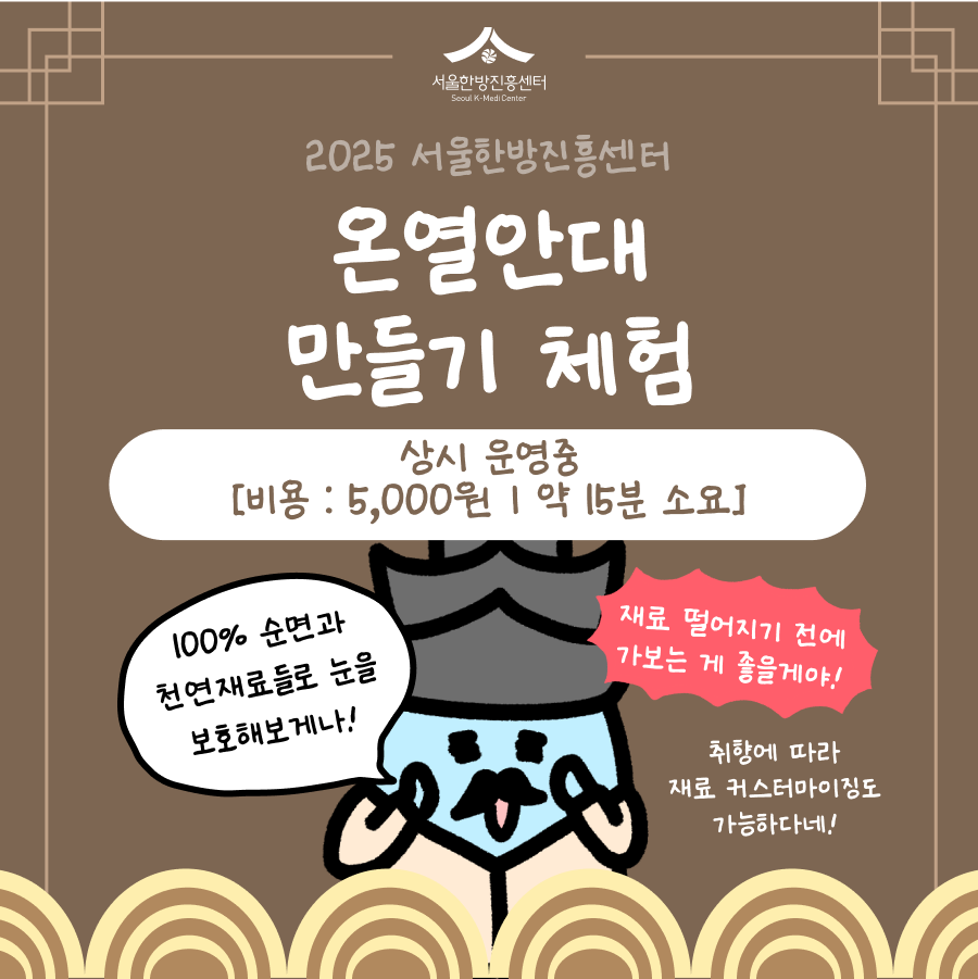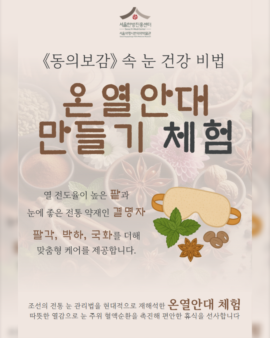 이러한 온열 안대를 단 5,000원에 만나볼 수 있으며, 서울한방진흥센터에서 직접 체험도 가능합니다. 수량 소진 전, 꼭 방문해보시기 바랍니다. ![]() |