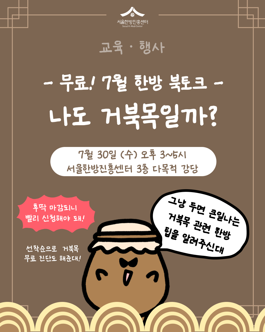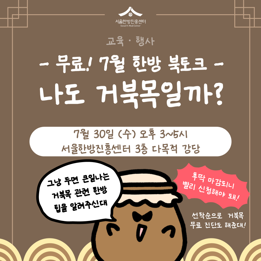 | [교육] 7월 한방 북토크 - 나도 거북목일까? | |