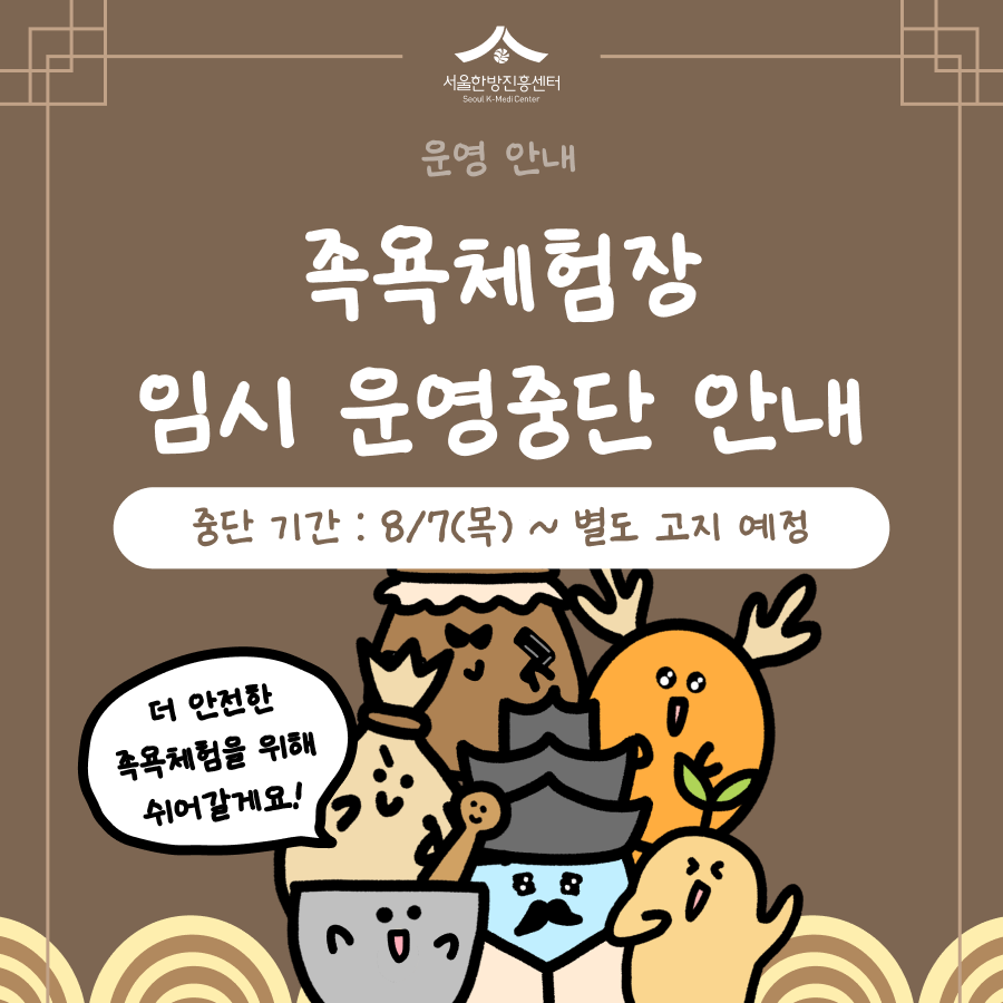 [운영공지] 족욕체험장 임시 운영 중단 안내