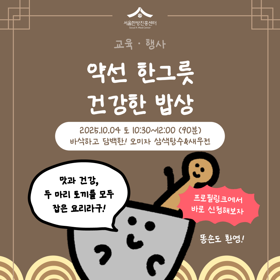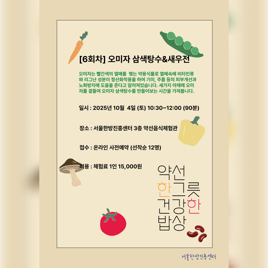 장소: 서울한방진흥센터 3층 약선음식체험관