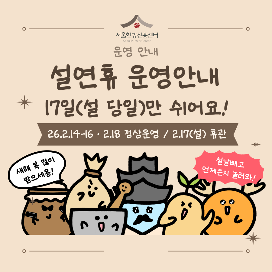 | [운영공지] 설연휴 기간 서울한방진흥센터 운영 안내 | |