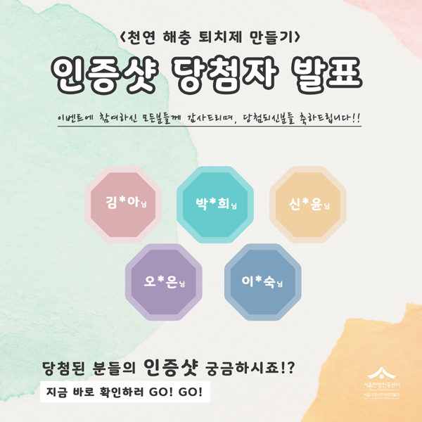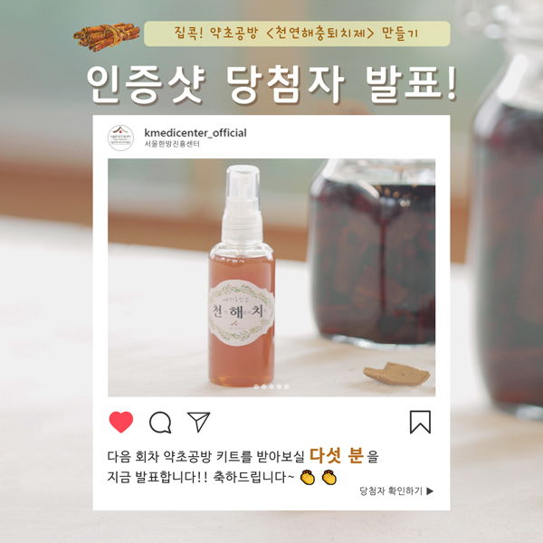| [온라인교육] 약초공방(천연해충퇴치제) SNS 인증샷 당첨자 발표 | |