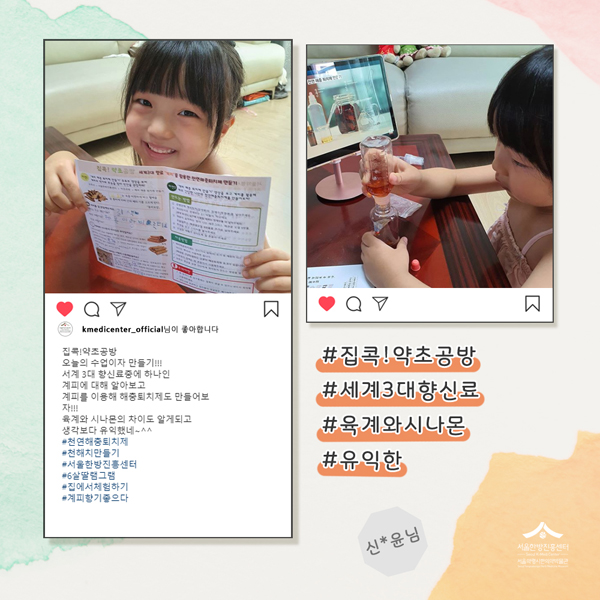 이번 인증샷 당첨자는 가족 참가자 분들이 많았다고 해요 ⠀ <집콕 약초공방>으로 한방아이템도 만들고 가족들과도 가까워 지고 일석이조네요~