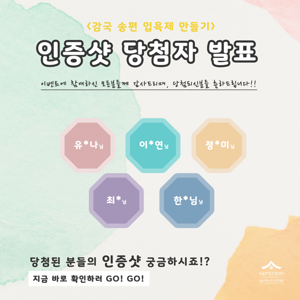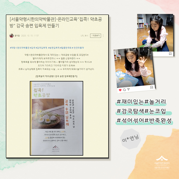 | [온라인교육] 약초공방(감국 송편 입욕제) SNS 인증샷 당첨자 발표 | |