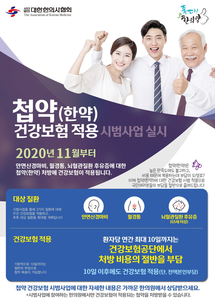 2020년 11월 20일부터 한약(첩약) 건강보험적용 시범사업이 실시됩니다.